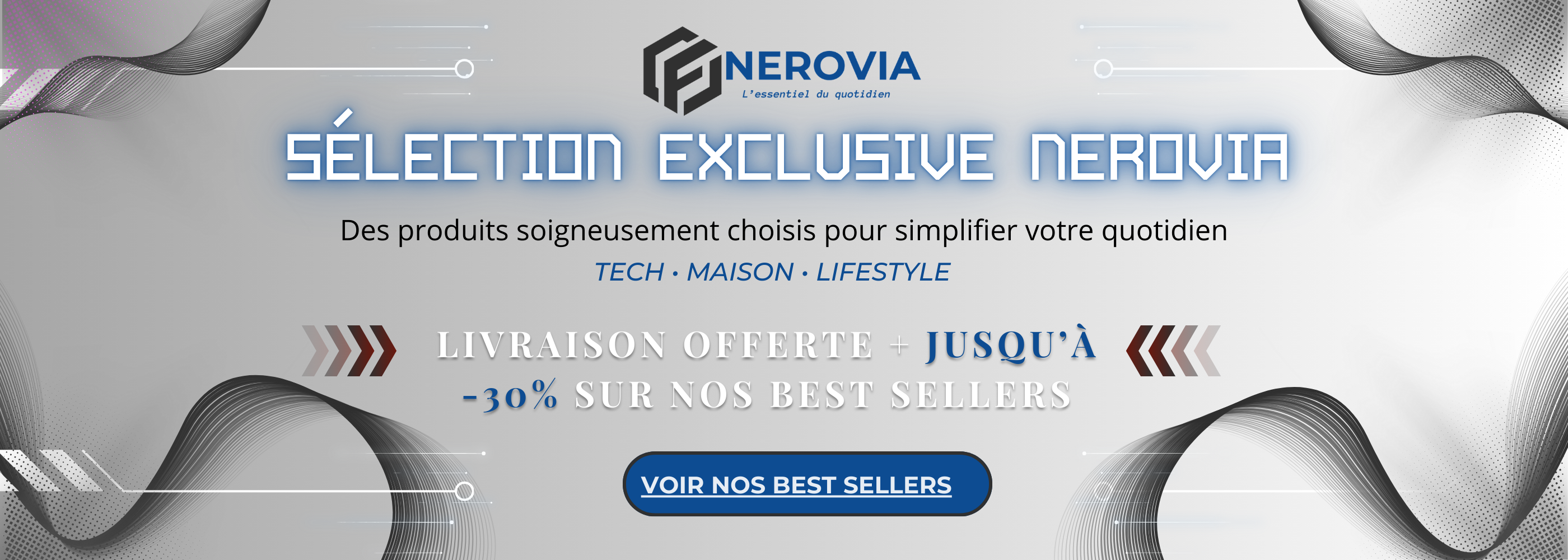 Chez Nerovia, nous sélectionnons des produits utiles, élégants et accessibles pour améliorer votre quotidien. Chaque article est choisi avec exigence, qualité et sens du détail.